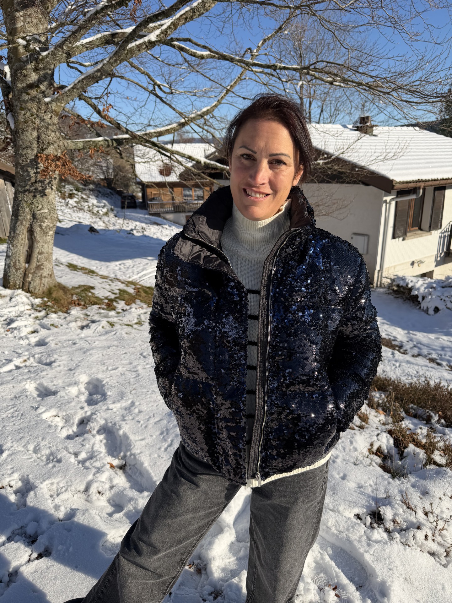 La doudoune ISADORA est ornée de sequins réversibles, offrant un effet ludique et contrasté à chaque mouvement. Sa coupe ample et son volume gonflé en font une doudoune femme confortable et tendance.